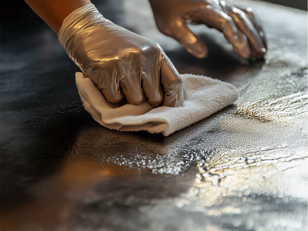 1. Покрываемая поверхность изделия подготавливается к нанесению. Для этого поверхность очищается и обезжиривается.